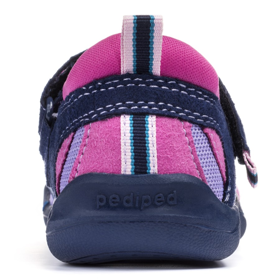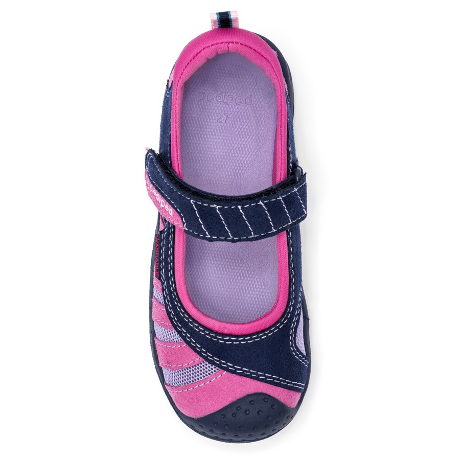 • Fun and sweet athletic mary janes in contrasting pink and navy with breathable mesh and bold stitching