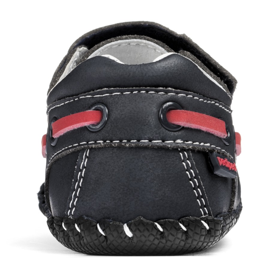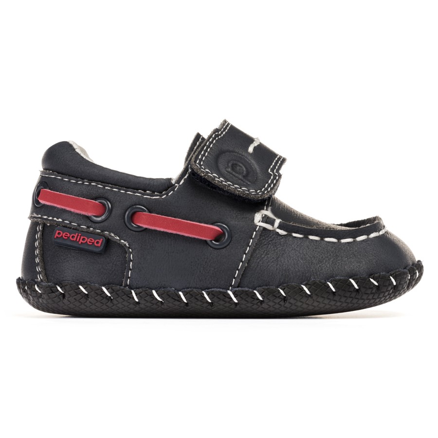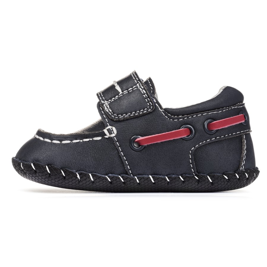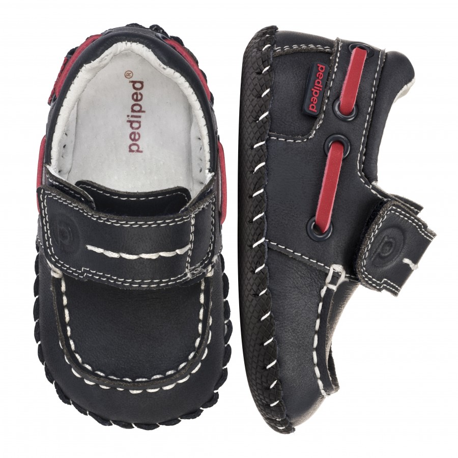 • Nautical-styled boat shoes in navy, featuring red rope lace detail